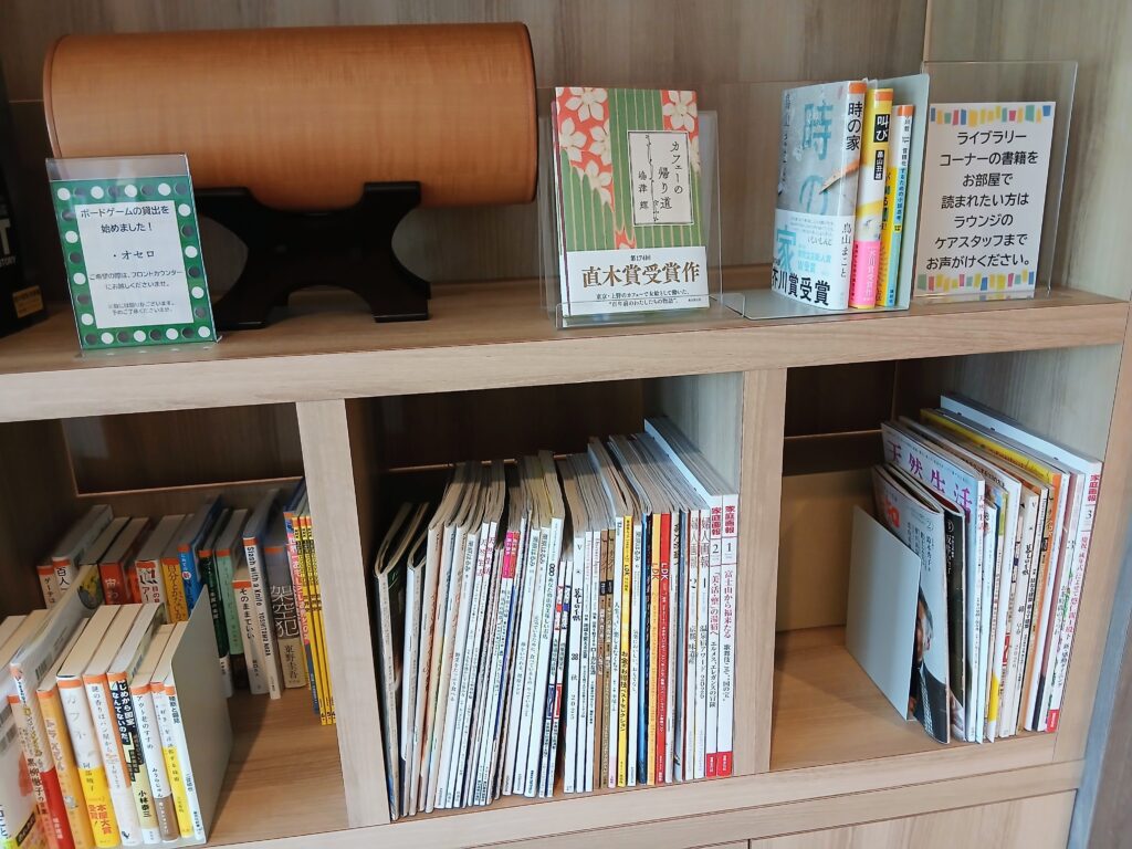 ライブラリーには、「暮しの手帖」や「天然生活」など、思わず手に取りたくなる雑誌や本が置かれていました。