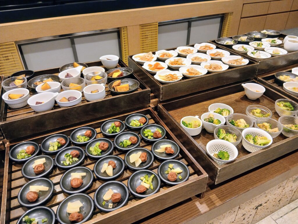 小鉢の多い朝食バイキング