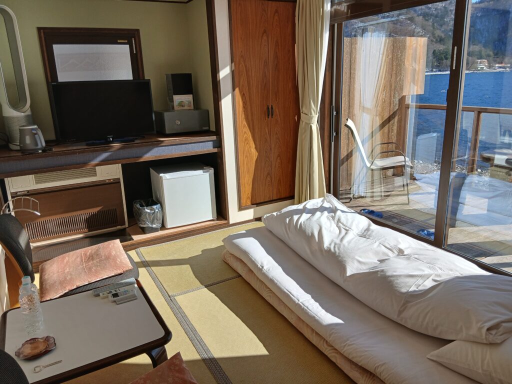 ホテルは1階と2階で全10室ですが、この部屋が構造上いちばん中禅寺湖に近いです。むしろとても良い部屋では…