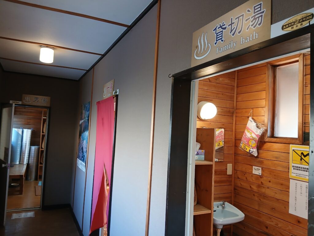 手前から、貸切湯、女湯、男湯があります。女湯から入ることに。