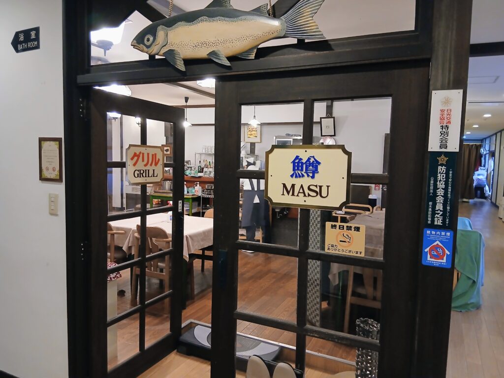 食事は朝夕ともに、レストラン「グリル鱒」でいただきます。