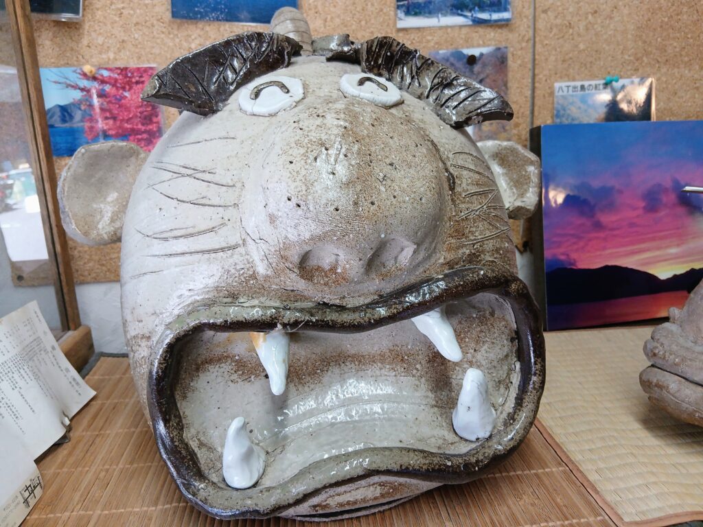 ホテル内に飾られていた益子焼の置物(?)。ほっこりする笑顔。