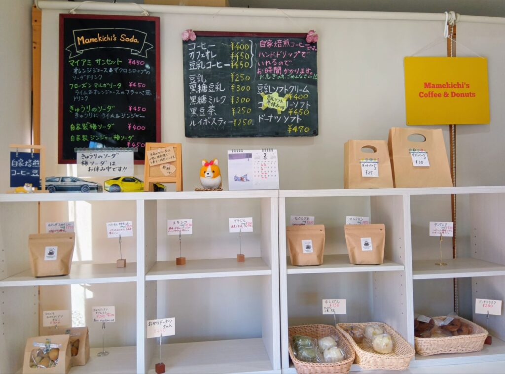 元豆腐屋さんで、2025年からコーヒーとドーナツのお店になったという「Mamekichi’s Coffee & Donuts」。