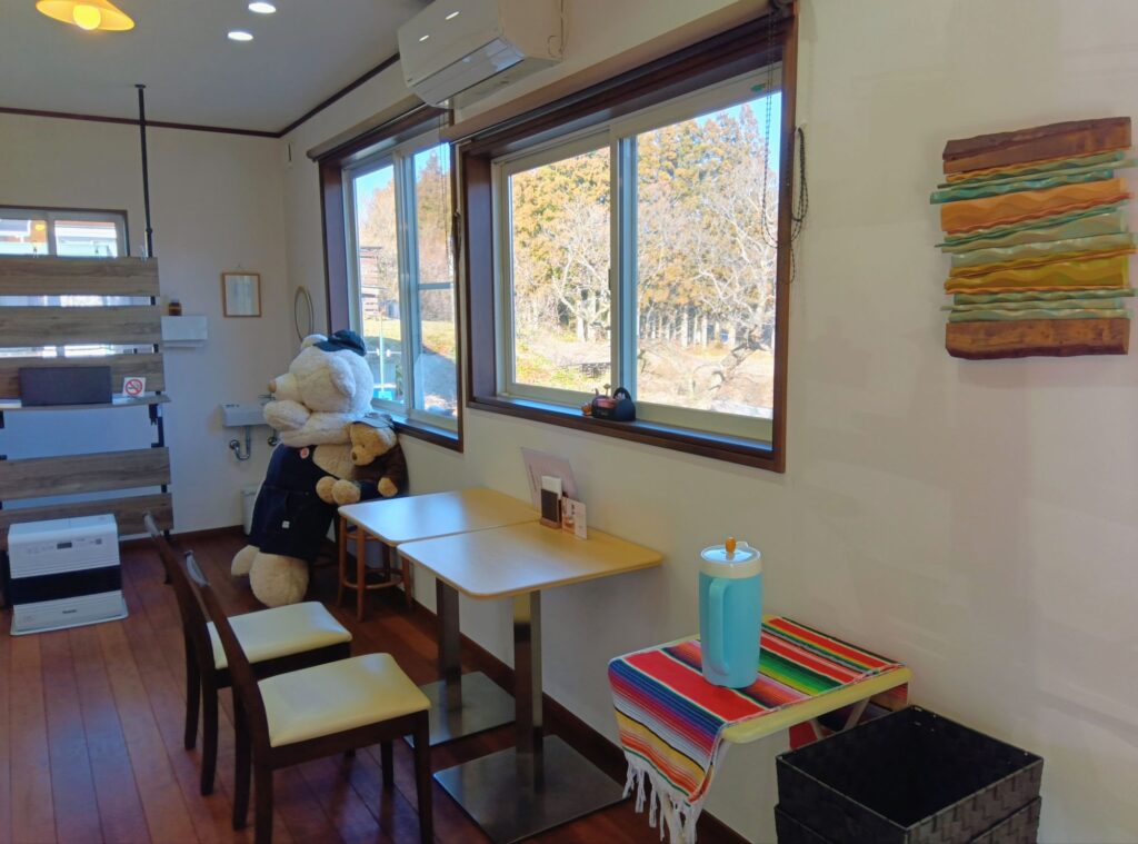 岳温泉に続く岳街道沿いにある「やまのパン屋 しゃっぽ」でホットサンドとカフェオレのお昼を食べた後。同じ通りにあるカフェに寄りました。