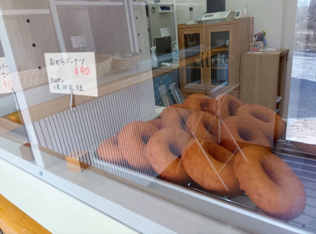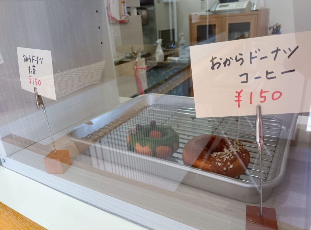 夕方に訪問したからか、商品は少なめでした。おからドーナツのかりんとうや、ドーナツラスク、蒸しパンなど。コーヒー豆もありました。