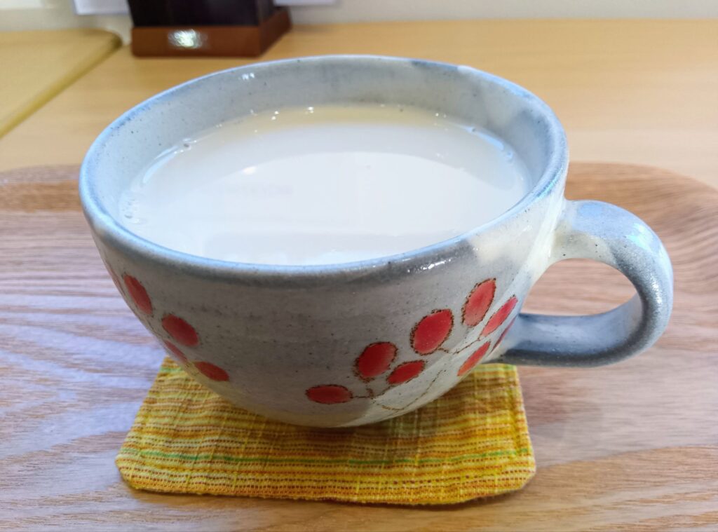 黒糖豆乳。たっぷり入っていました。黒糖のおだやかな甘みが加わった豆乳は、濃厚ながらも飲みやすく、美味しかったです。