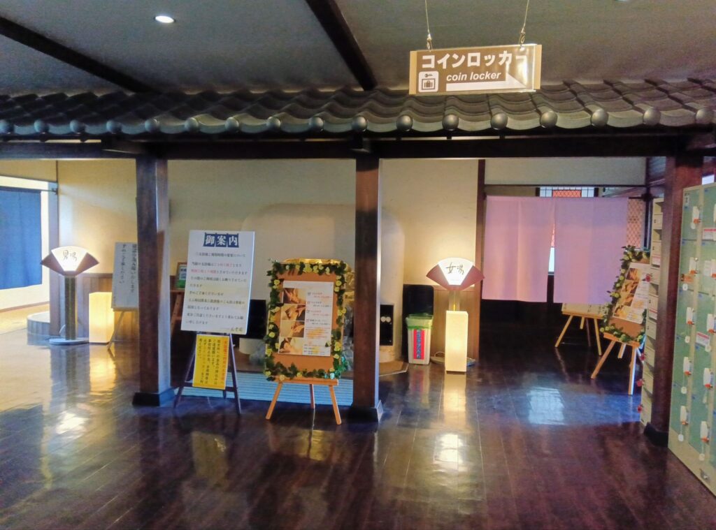 大浴場の入口。貴重品は手前のコインロッカーに保管します。