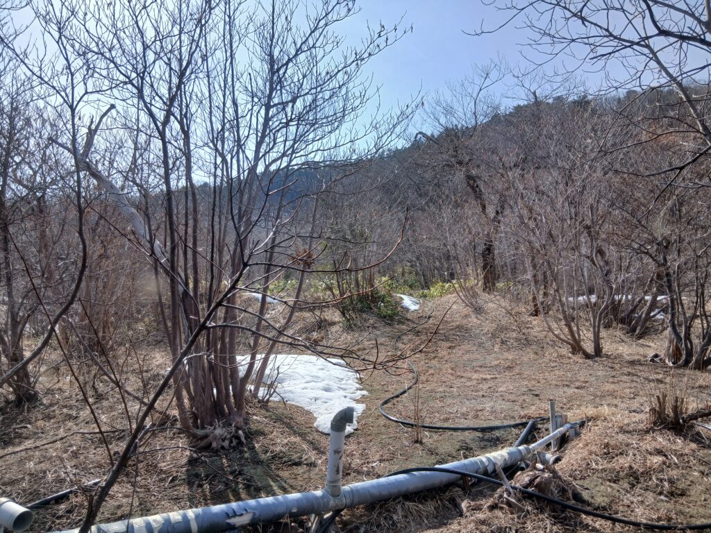 窓からの景色はこんな感じ。お湯を引いてる管も見えました。