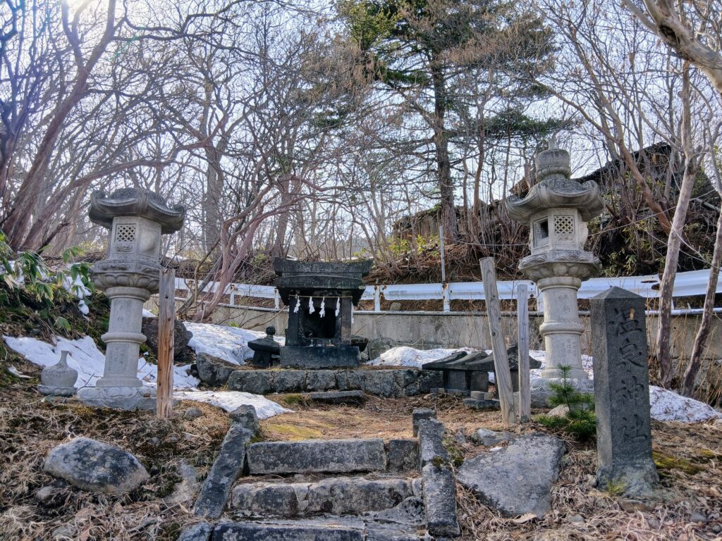来たときは気づかなかったけど、車で坂を上がる前の所に、温泉神社がありました。