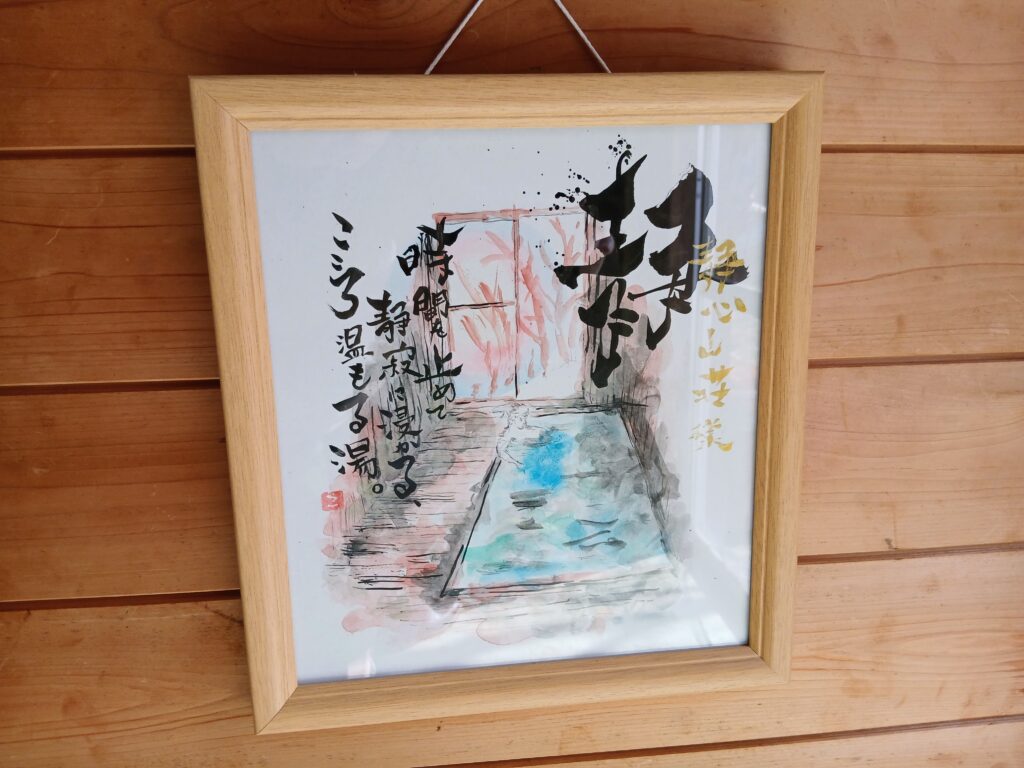 ここのお風呂の素敵な絵が。「時間を止めて 静寂に浸かる こころ温もる湯。」