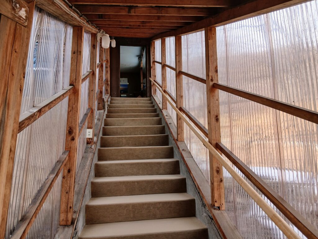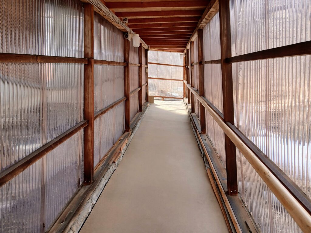 山の斜面に沿って連なるように建物が建っています。いちばん上の建物がお風呂。下の建物と上の建物は通路でつながっています。