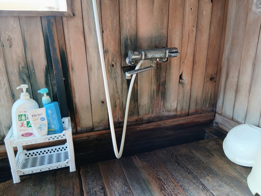 洗い場はひとつ。洗顔料、シャンプー、ボディソープがありました。