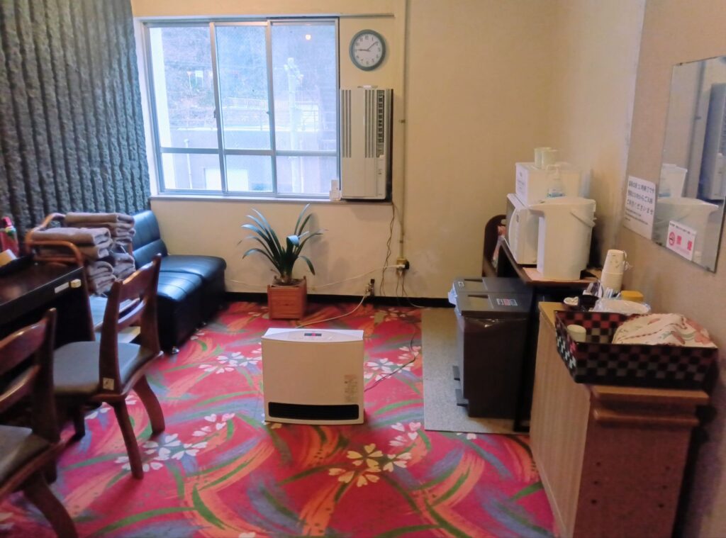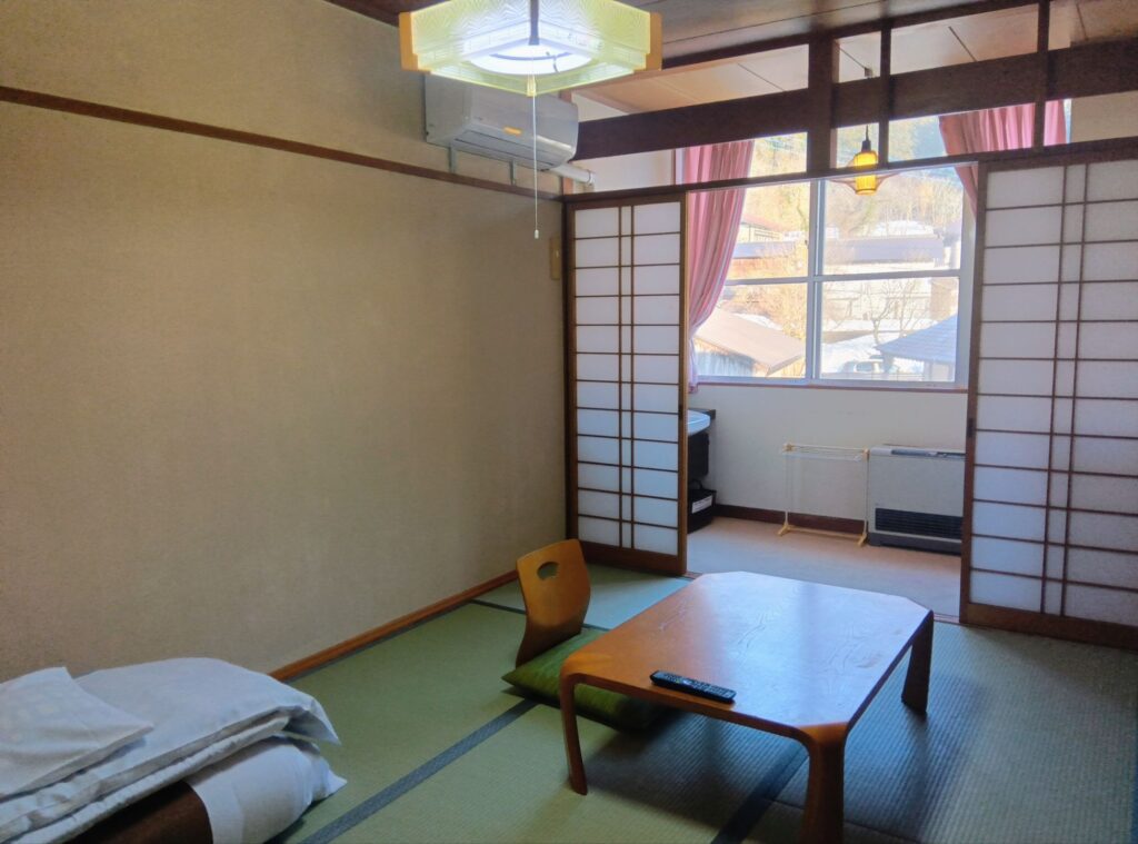 お部屋はこんな感じ。既に暖房が入って暖かい。布団は用意されているので、自分で敷きます。