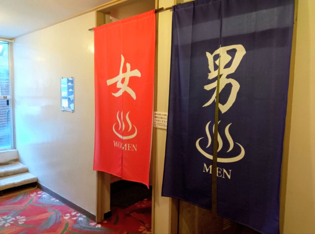 内風呂の入口。内風呂と露天風呂がありますが、露天風呂には洗い場がないので、先に内風呂で身体を洗います。